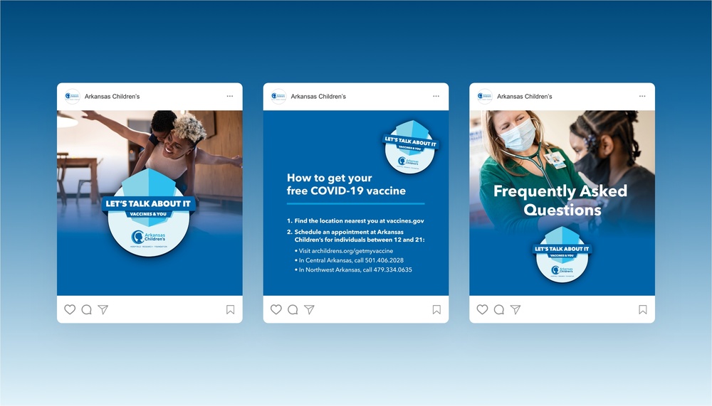 Social media prompts furthered the connection we sought to create with our audience, asking people about their questions and concerns, while always driving them back to the Arkansas Children's website for answers.